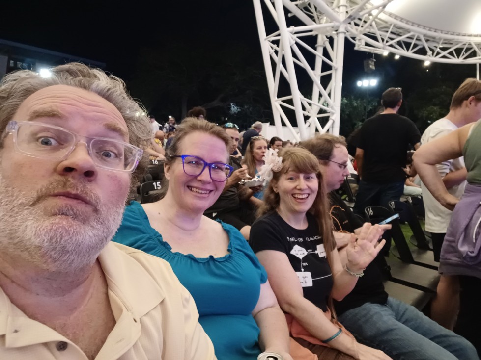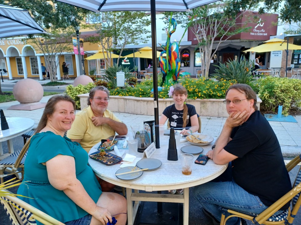 Friends eating before Weird Al concert